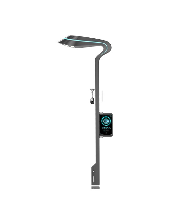 TL001-多功能合一智慧燈桿擁有較強的金屬質感,顏色方面采用了灰黑色與熒光藍的搭配,簡約中帶點高級感,采用高效節能的LED模組燈源,能配套LED燈桿屏使用,搭配360°高清軌跡攝像頭,自帶5G終端天線,可實現集群控制,帶有新能源充電口與USB接口,方便市民生活,提高生活質量。